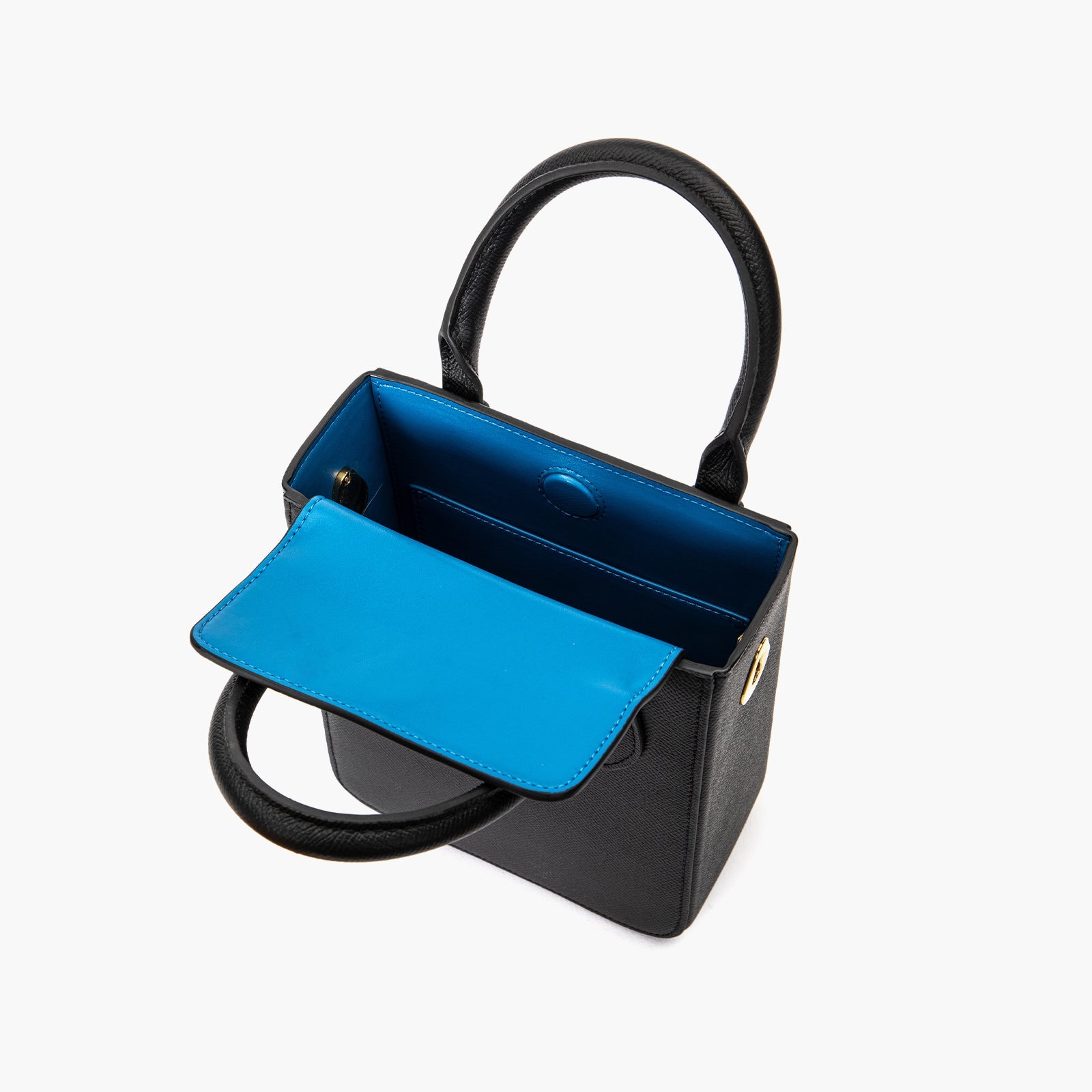 Aieda Bag (Saffiano Leather High Quality) with adjustable shoulder strap, top double handles, can be worn crossbody or carried by hand.