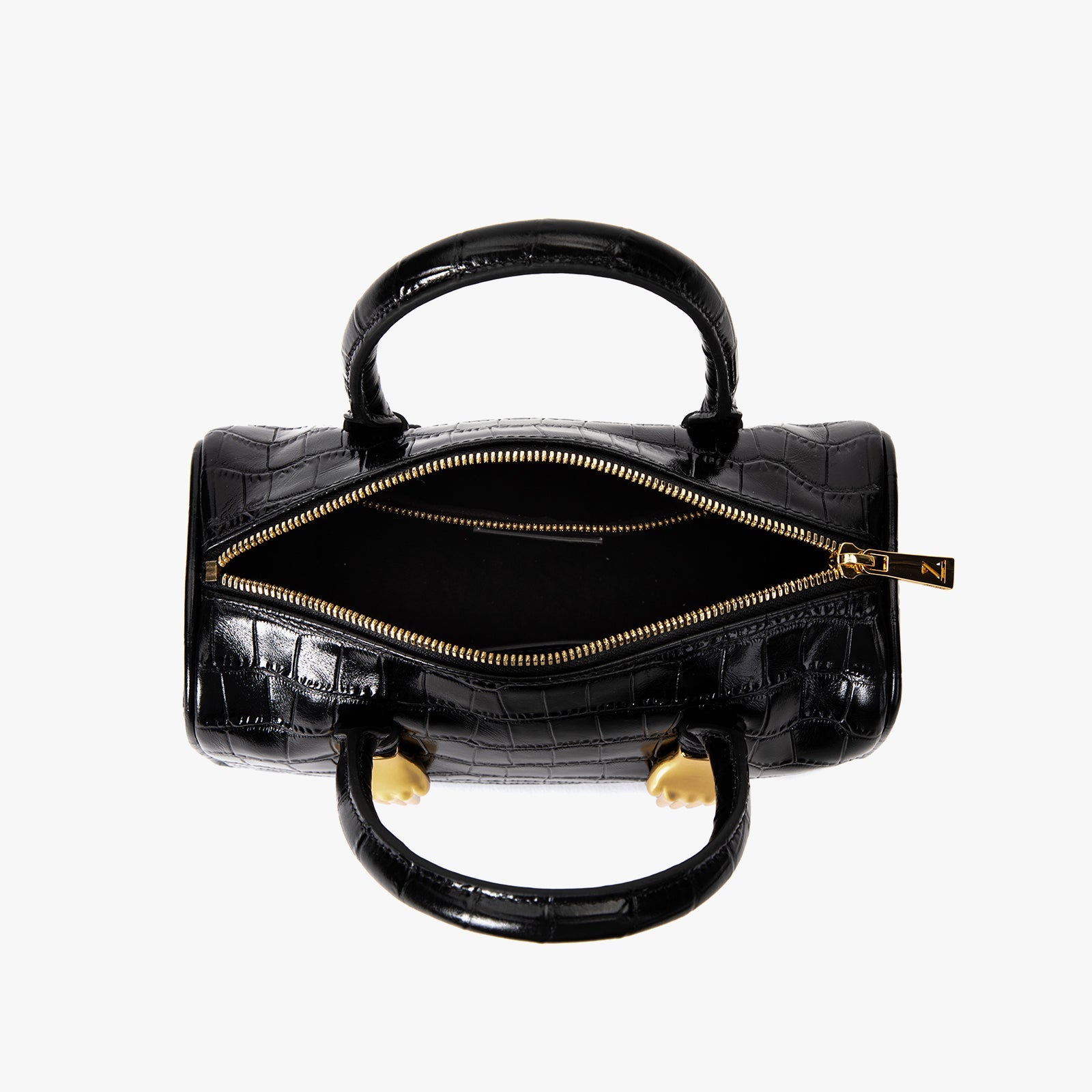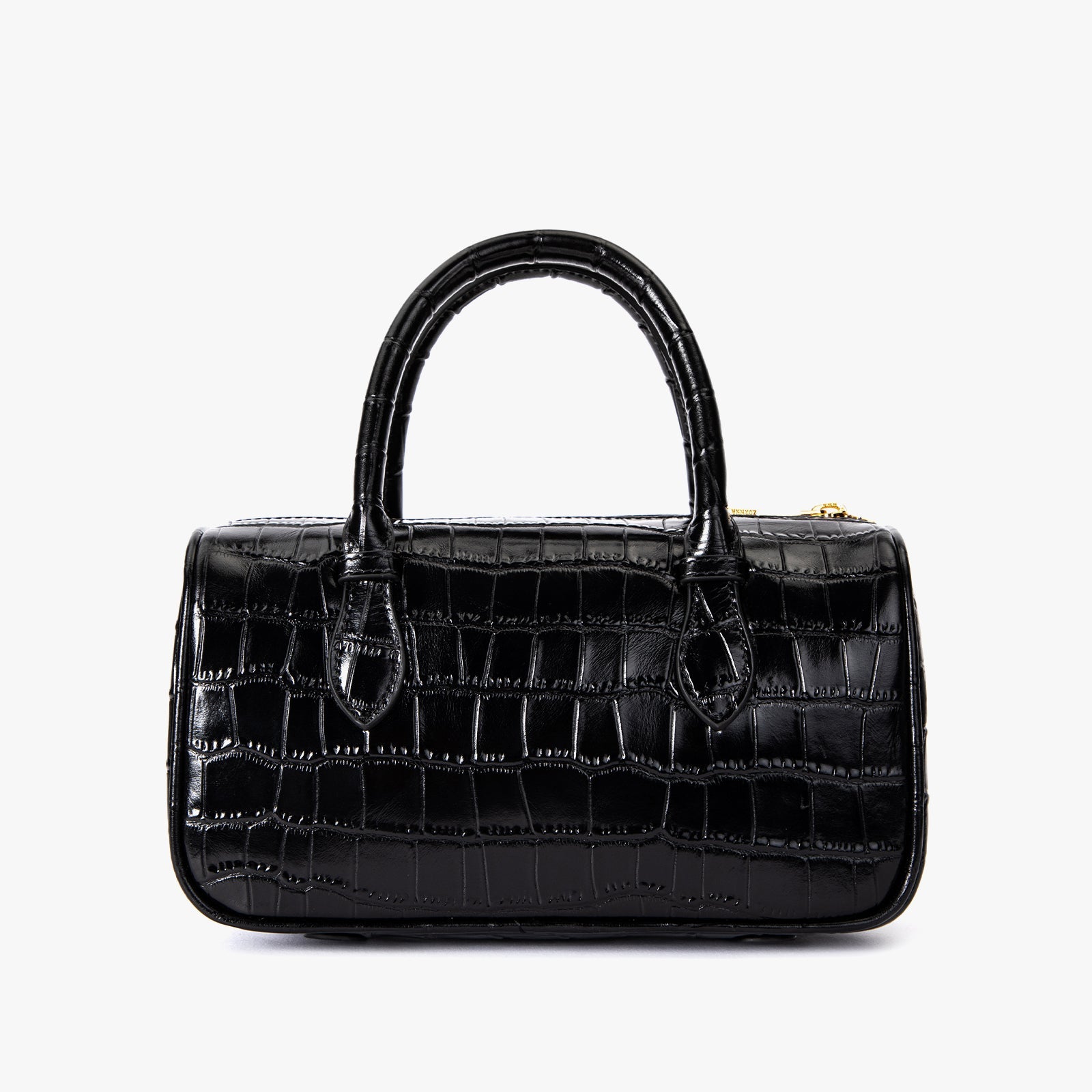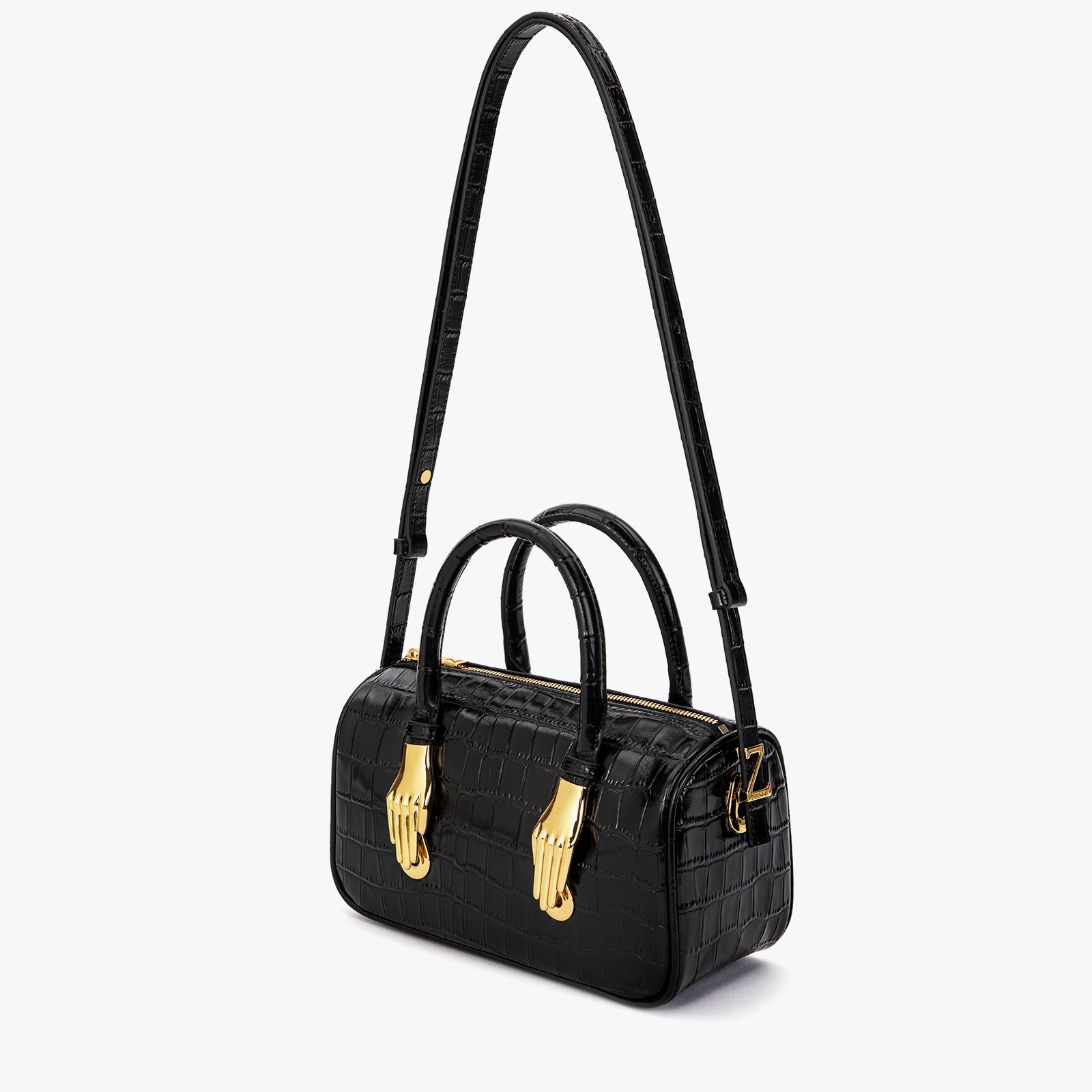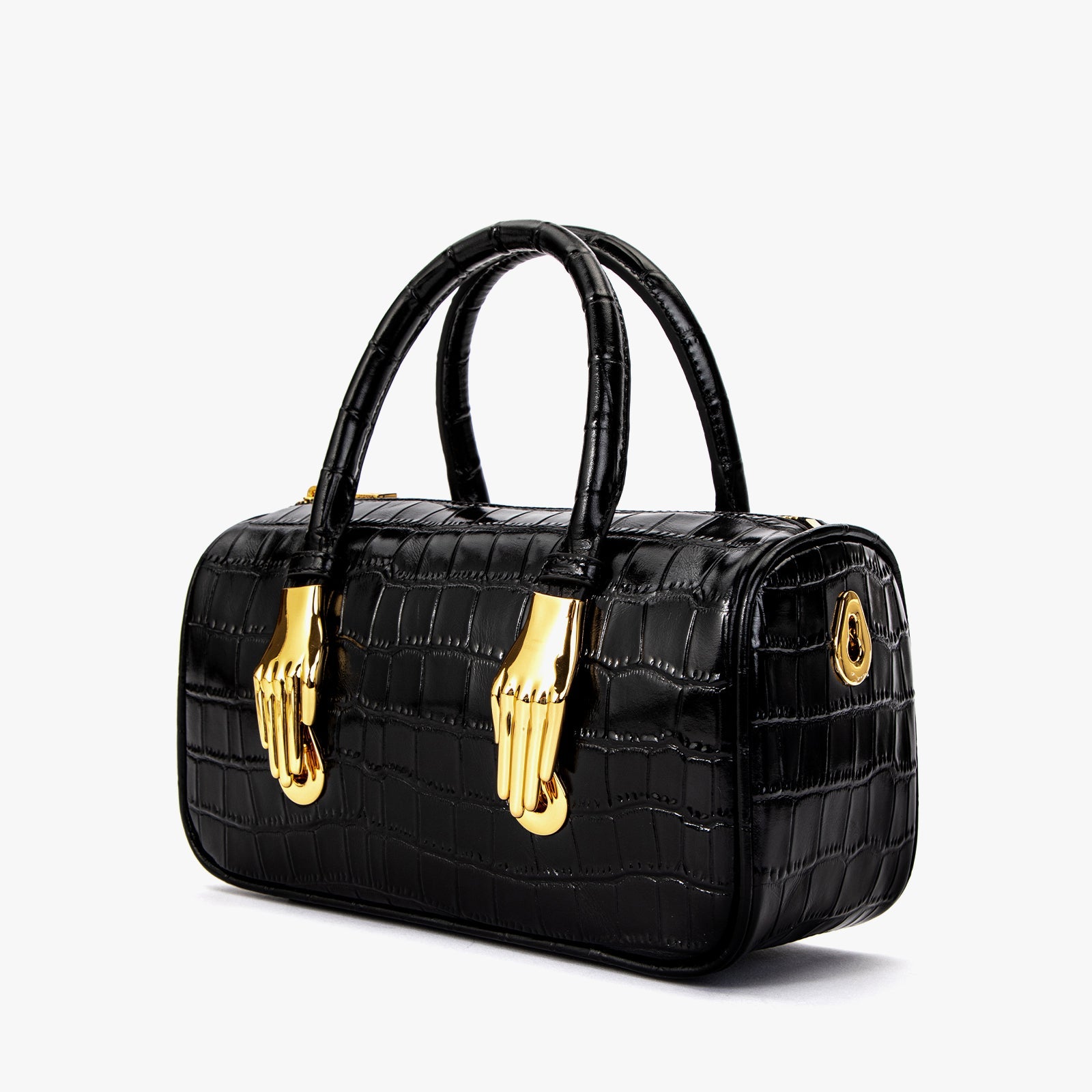 The Aura Bag combines high-quality leather with a compact, mini-duffel shape inspired by travel essentials. Its standout feature is the gold-tone hand-shaped hardware, bringing a distinctive, artisanal touch to the design. Sized to carry just the essentials.