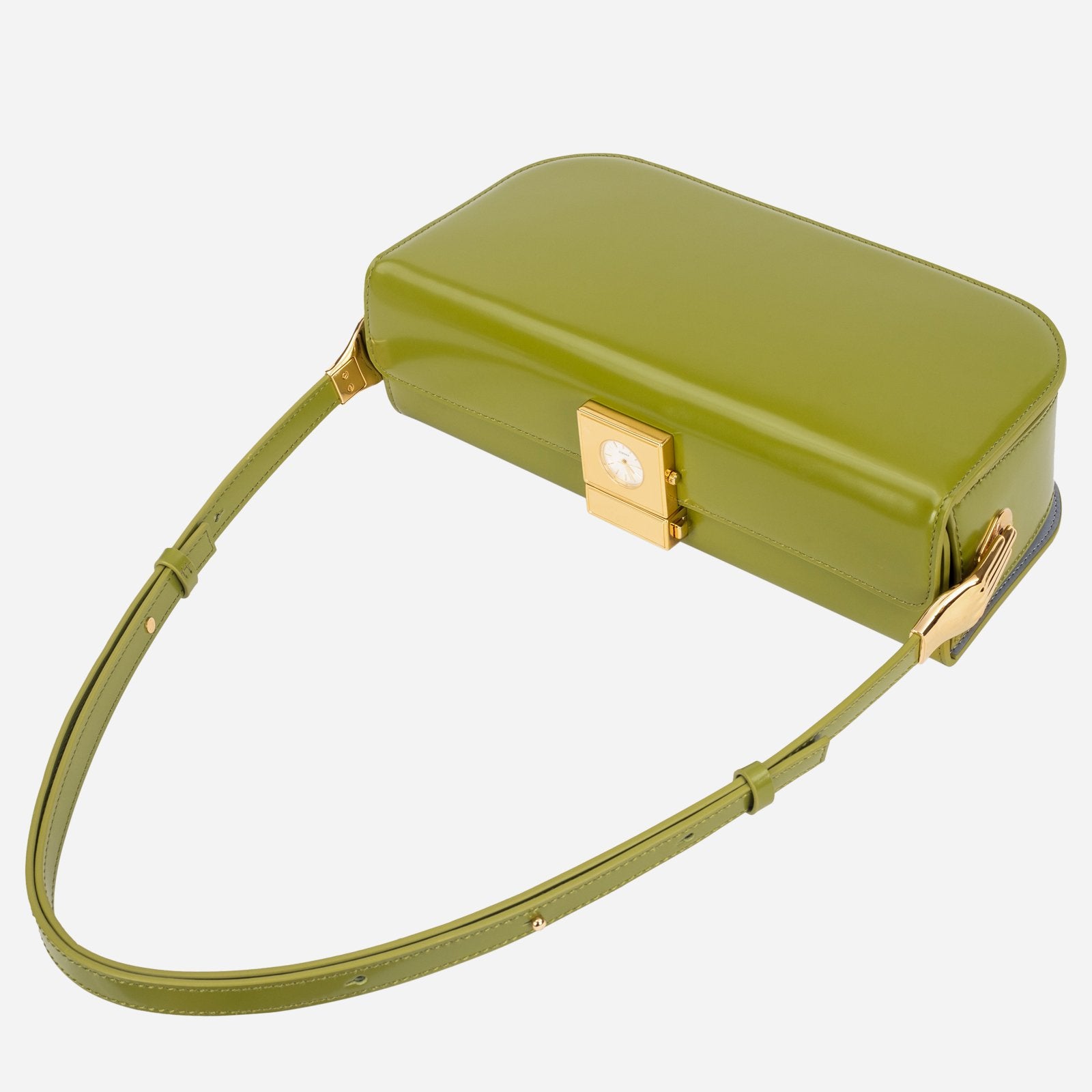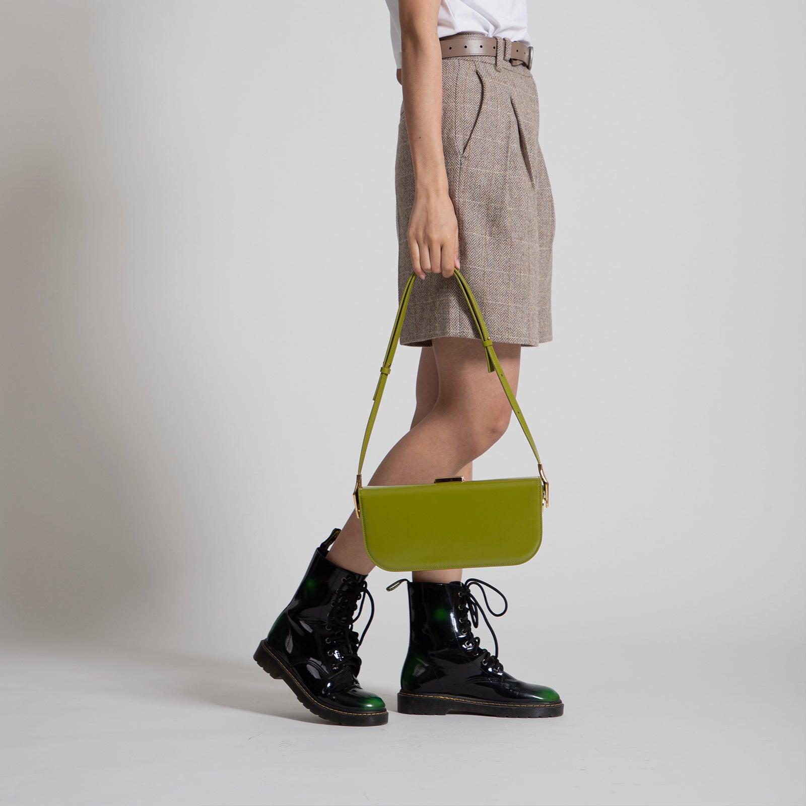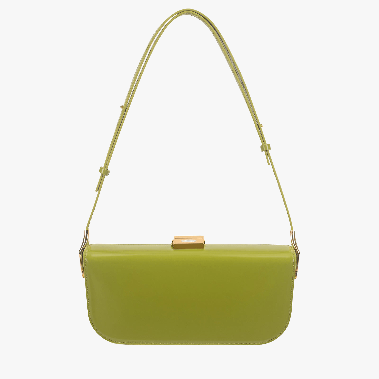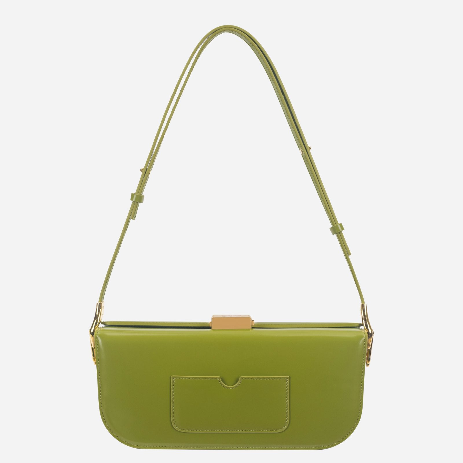 LIMA Baguette Bag with an adjustable and detachable shoulder strap, featuring a top flap closure and gold-tone hardware.