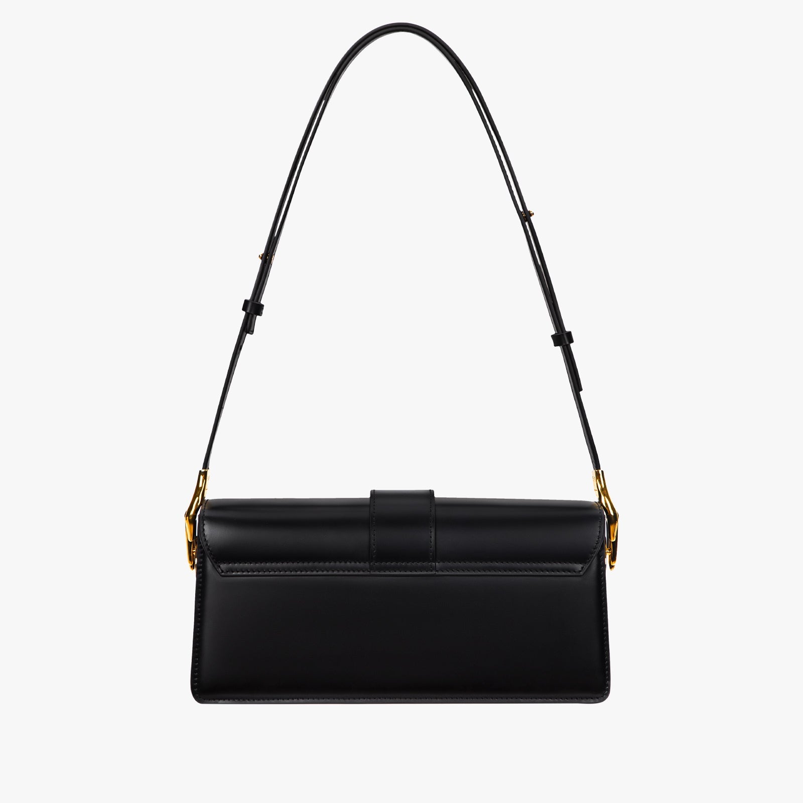 Baguette Shoulder Bag, black top-grain leather, adjustable shoulder strap, gold-tone clock buckle.